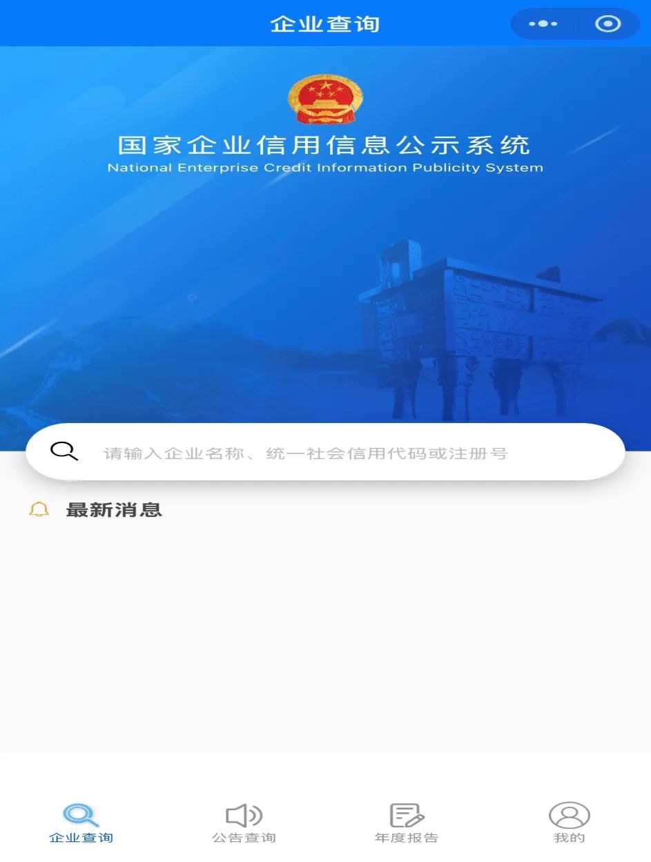 通过微信搜索“国家企业信用信息公示系统”小程序,点击“企业查询”功能,输入关键词即可查询信息。