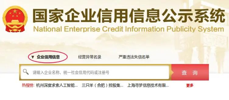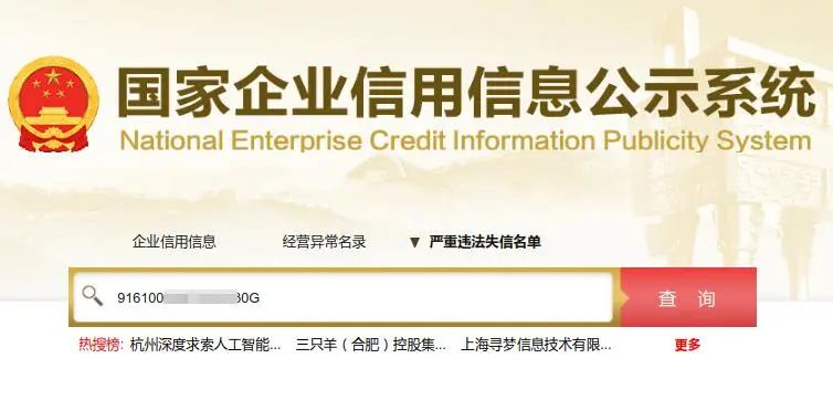 精确查询:输入企业全称或统一社会信用代码。