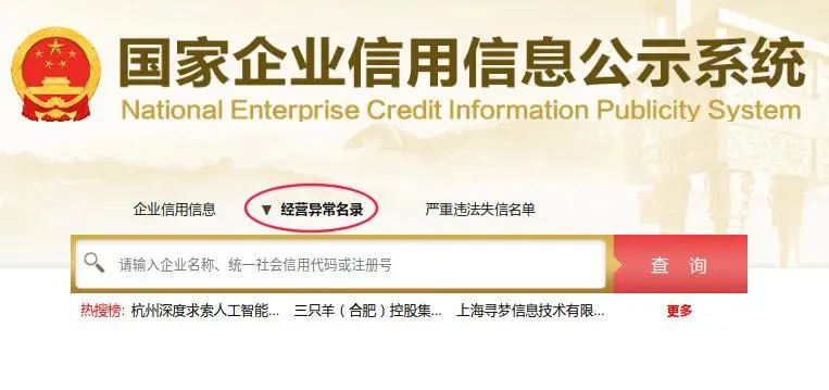经营异常名录:在被列入经营异常名录企业中查询。