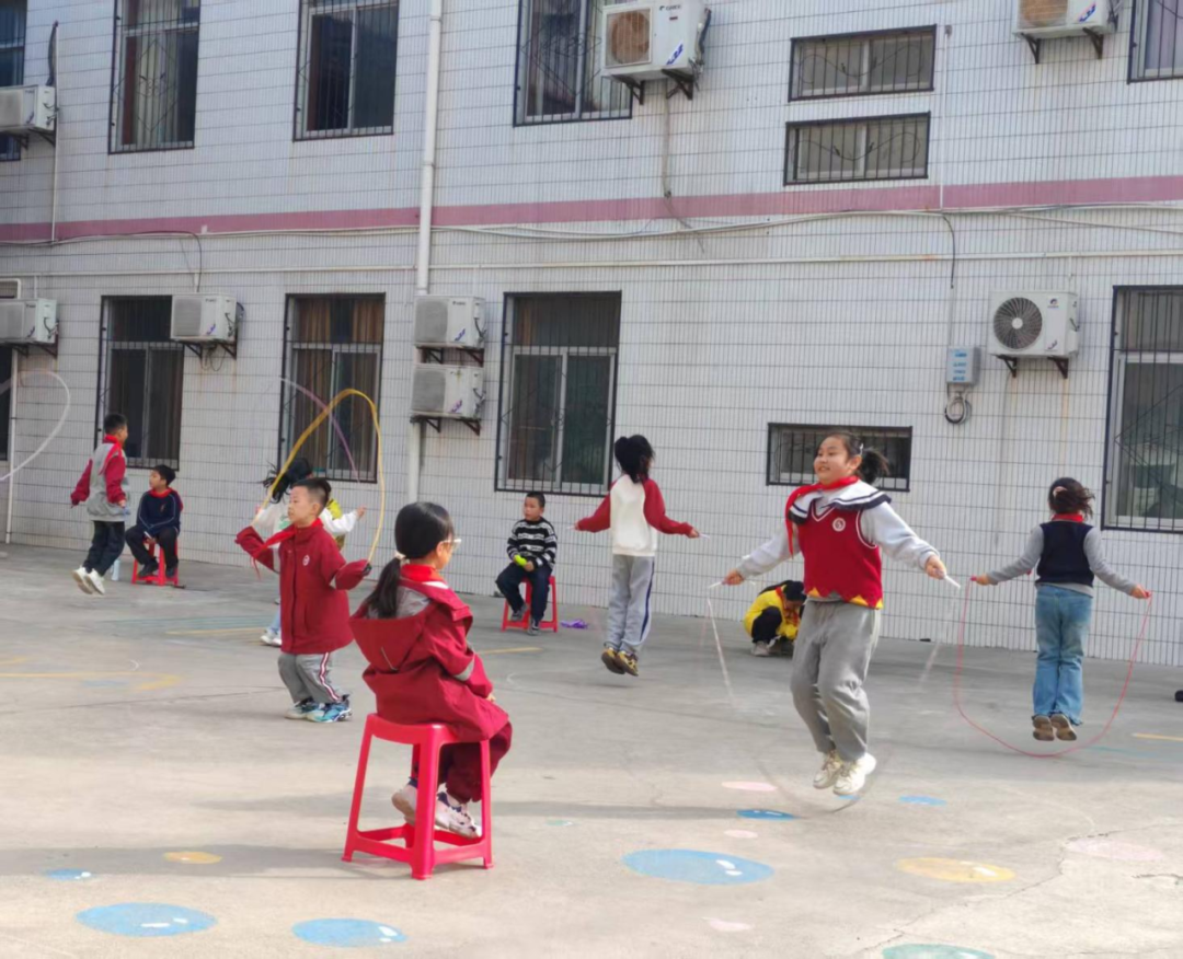 校长致辞点燃激情后,三跳队队员们登场啦!跳绳翻飞如彩练,踢毽轻盈似蝶舞,精彩表演赢得阵阵喝彩。