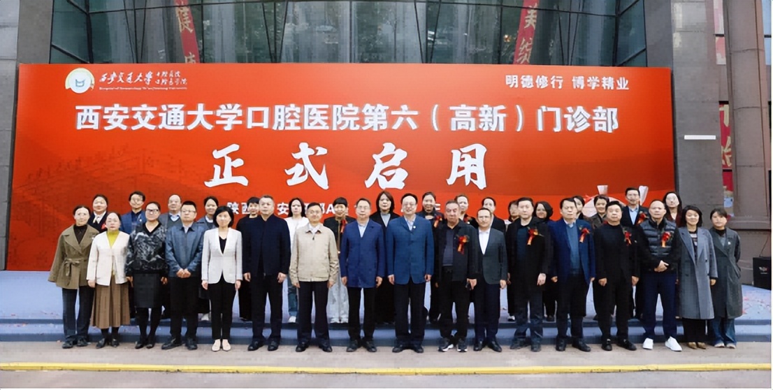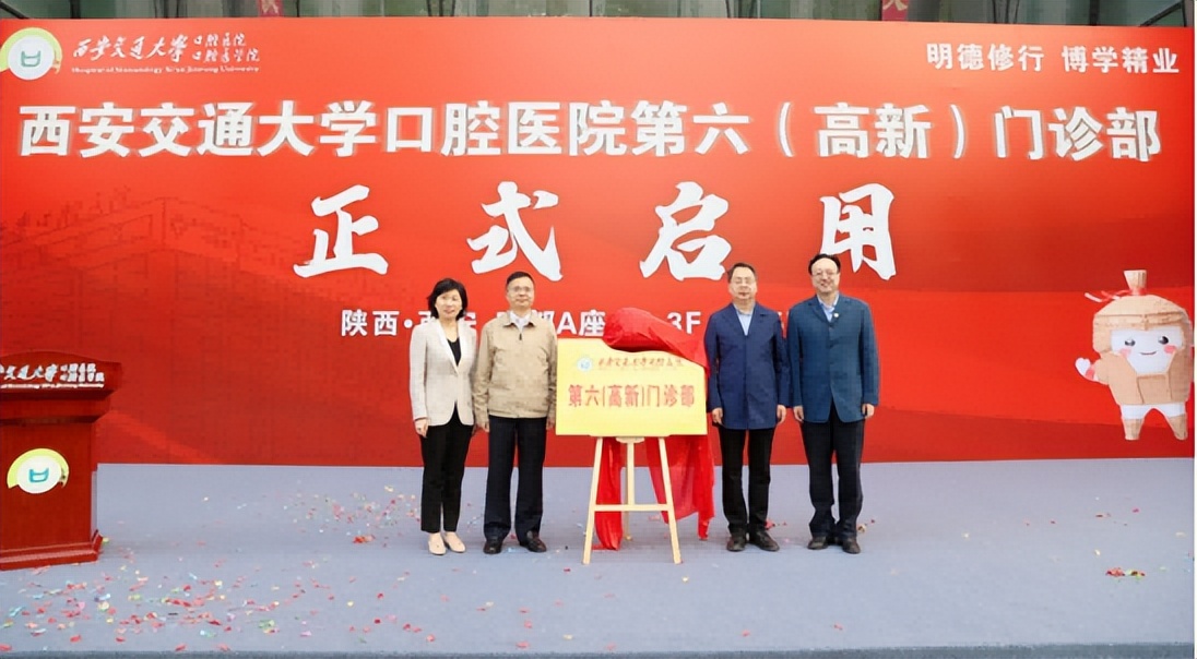 在全体来宾的见证下,何平局长与孟晓军副主任共同为第六(高新)门诊部揭牌,标志着西安交通大学口腔医院在高新区的服务全面开启。