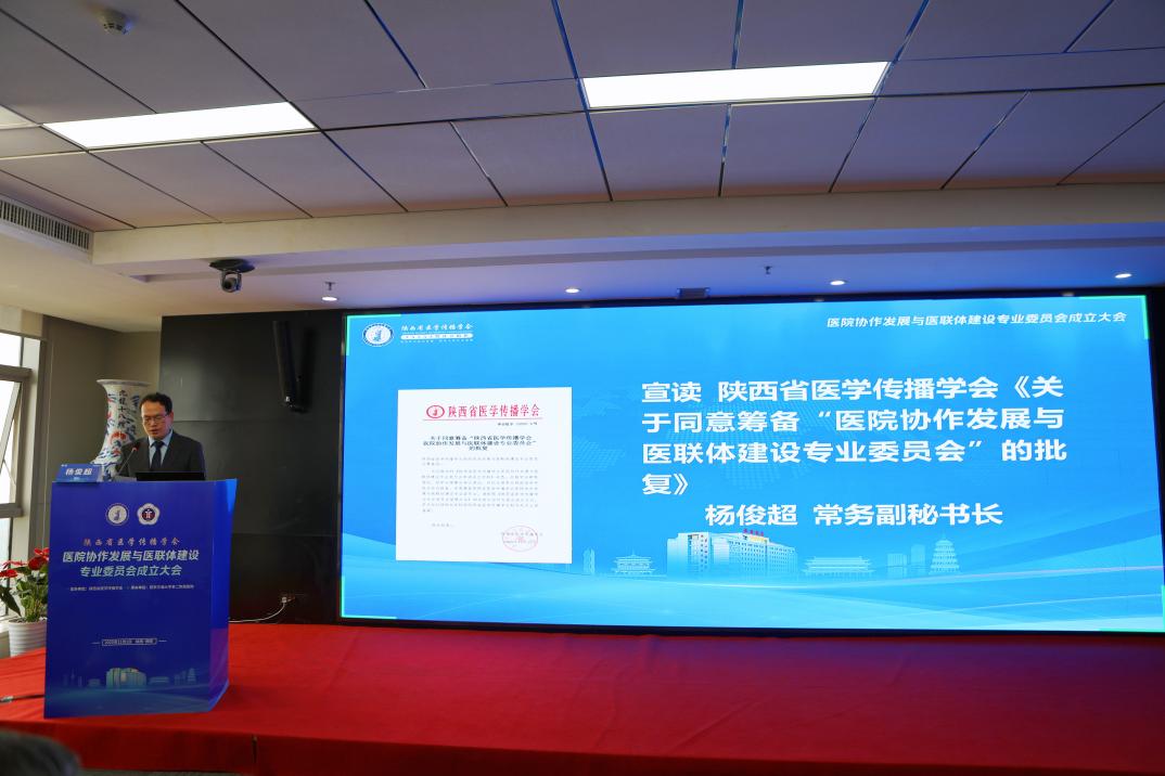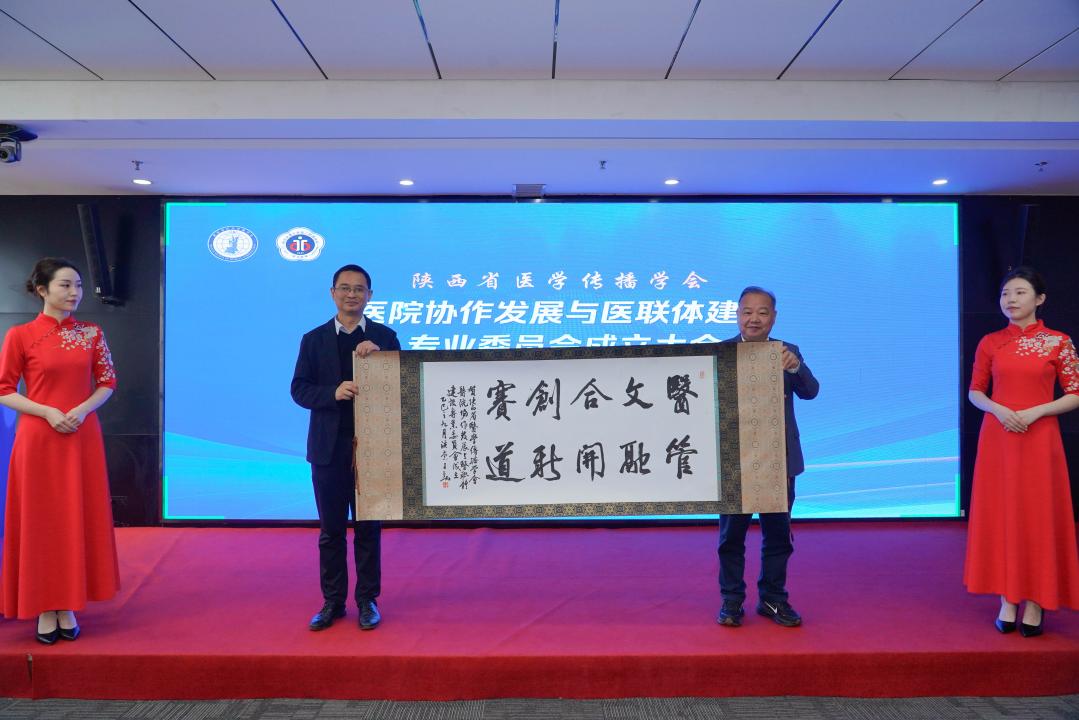 随后,陕西省医学传播学会常务副秘书长杨俊超宣读同意成立医院协作发展与医联体建设专业委员会批复文件,王劲为专委会赠送“医管文融合、开创新赛道”纪念题词。