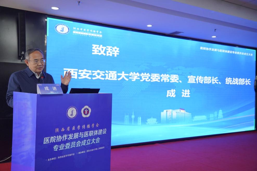 西安交通大学党委常委、宣传部长、统战部长成进在致辞中对医院协作专委会的成立表示热烈祝贺。他指出,专委会的成立不仅是西安交通大学助力陕西卫生健康事业发展的务实举措,也是加强新时代统一战线工作、完善大统战格局、共同推动医疗卫生体制改革的生动实践。医院协作专委会要依托设立的“医管”融合与卫生发展研究中心,汇聚西安交通大学的管理与人文社科优势,着力打造“三大高地”:持续发挥引领作用、打造标杆“交流平台”;深化医管融合、铸造人才“孵化基地”;推动校地融合、发好共赢“宣传之声”,切实将“医管”融合成果转化为服务人民健康、助力健康中国发展的强大动力。