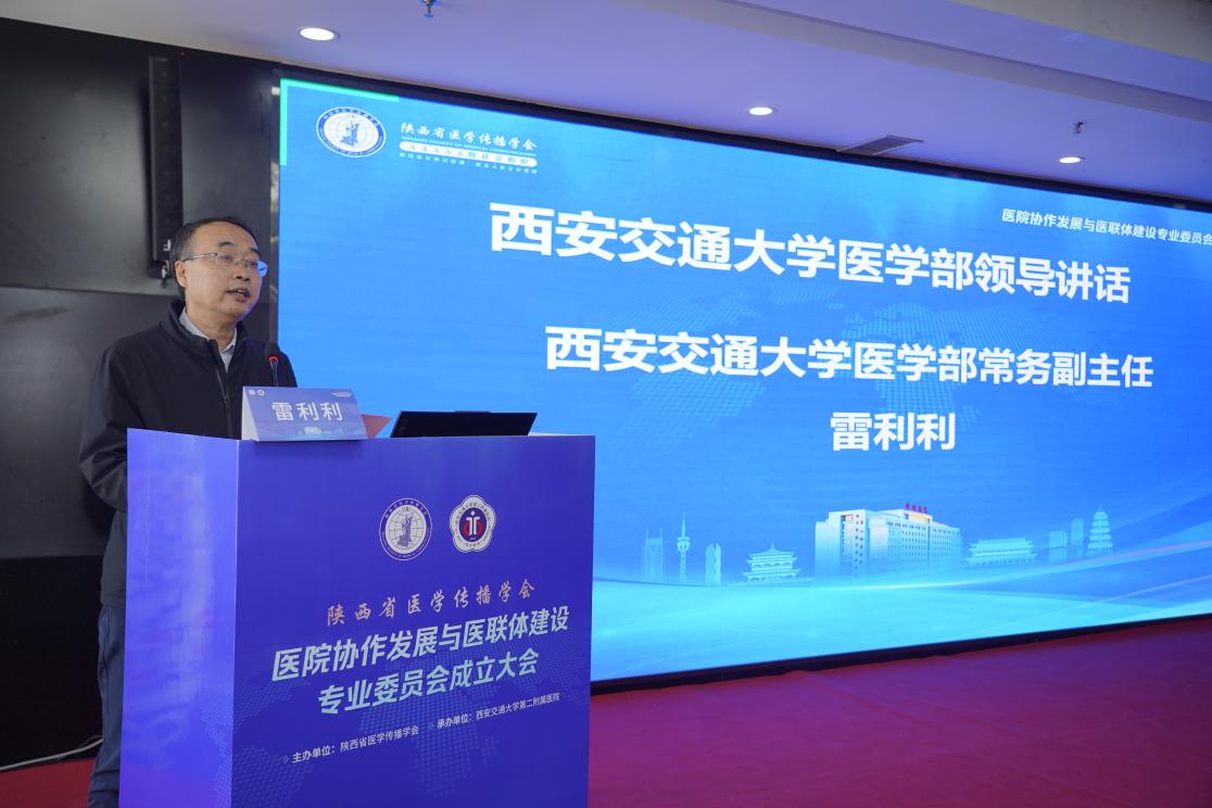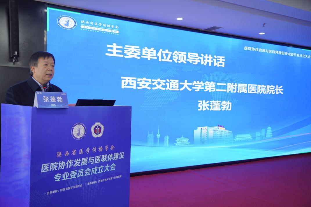 阳光讯(记者 郑亚雷)为深入贯彻落实国家关于深化医药卫生体制改革的决策部署,搭建省域各级医疗机构管理经验交流与成果推广平台,培育“懂医疗又懂管理”的复合型人才,开展“医学”与“管理学”融合探索,11月2日,由陕西省医学传播学会主办、西安交大二附院承办的陕西省医学传播学会医院协作发展与医联体建设专业委员会(以下简称“医院协作专委会”)成立大会在西安召开。西安交通大学党委常委、宣传部长、统战部长成进,陕西省医学传播学会会长李宏杰、副会长兼秘书长王维君,西安交通大学管理学院党委书记马晓彬、公管学院院长周忠良、医学部常务副主任雷利利、人文学院党委副书记王劲,一附院副院长韩苏夏,二附院院长张蓬勃、副院长戴一,以及来着全省11个地市、45家医疗机构的主要领导者和管理者共百余人参加成立大会,携手共绘医管融合战略蓝图。与此同时,医院协作专委会选举产生了专委会第一届常务委员、主任委员、副主任委员等,西安交大二附院为主委单位、西安交大二附院副院长戴一当选主任委员。
