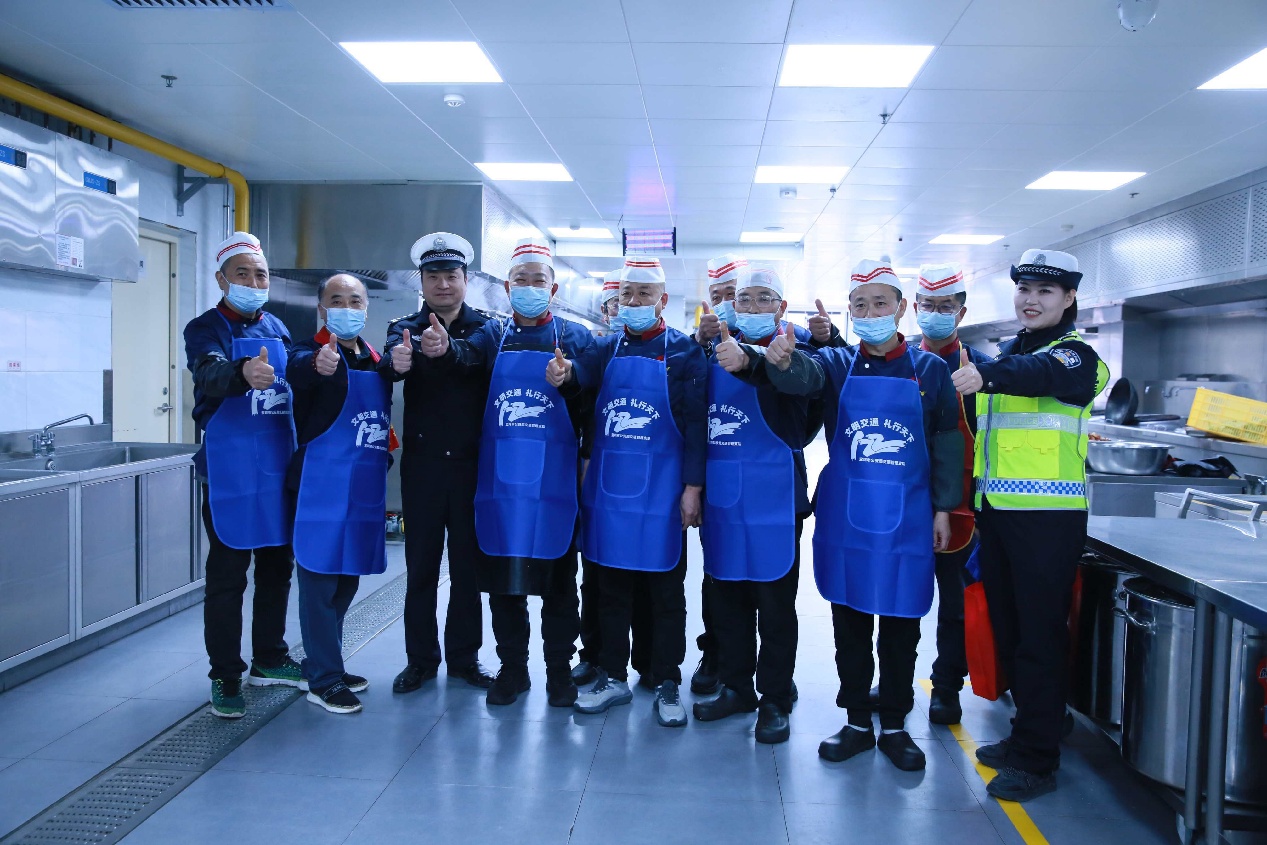 活动现场,交警结合近期典型酒驾事故案例,向厨师和就餐员工讲解酒驾醉驾的法律后果与安全危害。“一杯酒下肚,不仅可能面临罚款、扣分、吊销驾照,更会给家庭和他人带来无法挽回的伤害。”交警用通俗易懂的语言,剖析了酒后驾驶对判断力、操作力的影响,强调“开车不喝酒、喝酒不开车”的重要性。 同时,交警还为在场员工送上定制的“文明交通 礼行天下”主题围裙,让“安全出行”的理念融入工作与生活细节,既守护舌尖美味,更守护出行平安。并呼吁大家不仅要自身遵守交规,还要提醒家人朋友共同抵制酒驾。