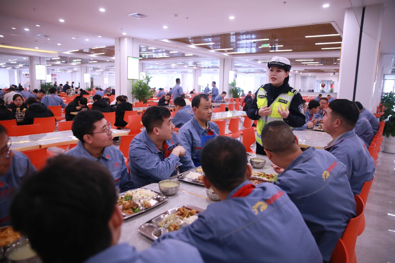 阳光讯(记者 芮扬)为深入开展酒驾醉驾和摩托车低速载货汽车交通违法集中整治行动,筑牢交通安全防线,11月11日,宝鸡市公安局交警支队宣传科和凤翔大队交警走进陕西西凤酒股份有限公司。利用员工午餐时段开展酒驾醉驾主题宣传,将交通安全宣传阵地延伸至员工后厨与食堂这一日常场景。