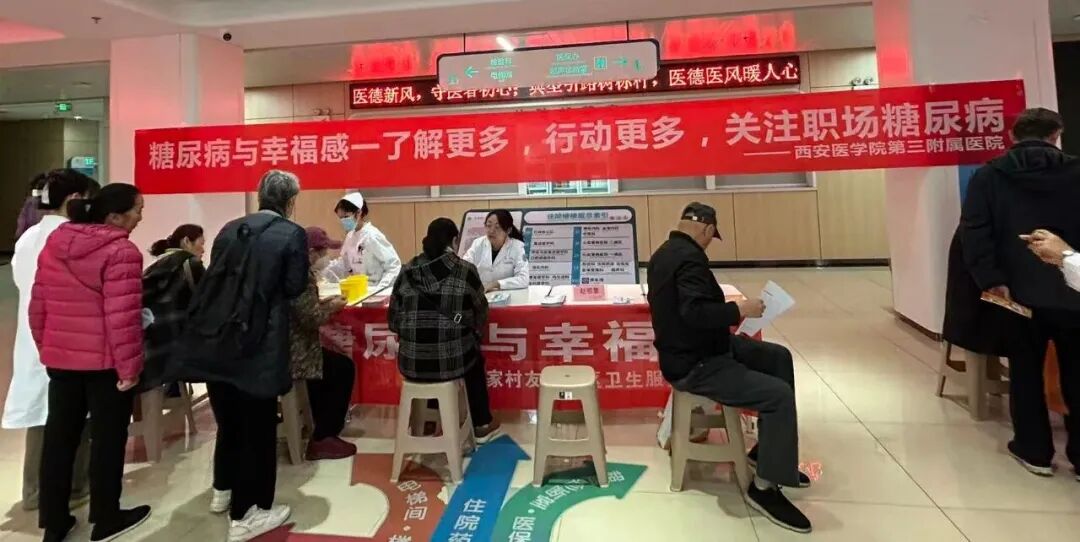 阳光讯(记者 郑亚雷)11月14日第19个联合国糖尿病日如约而至,今年主题聚焦“糖尿病与幸福感”核心口号是“了解更多、行动更多、关注职场糖尿病”,西安医学院第三附属医院康复医学科内分泌科开展了一系列活动。