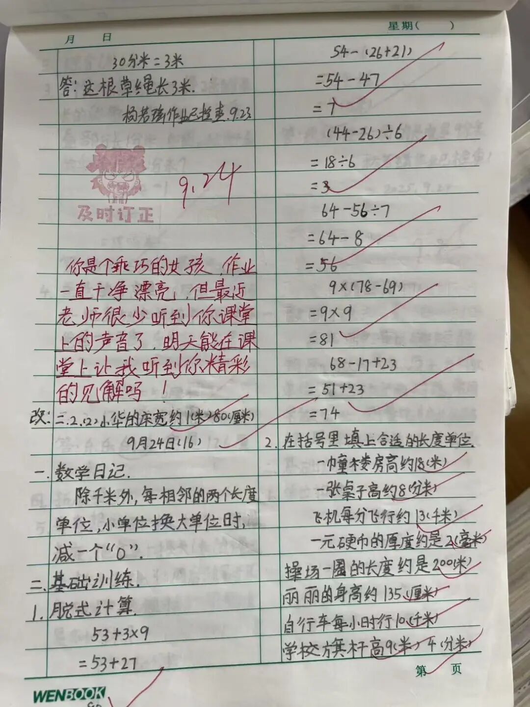 作业设计有巧思。各年级作业设计注重基础性与拓展性结合,不少教师将“思维图示”融入作业,用思维导图梳理文章脉络、用流程图拆解数学解题步骤,让抽象知识可视化,有效锻炼学生逻辑思维。全体教师均能立足素质教育,落实“双减”政策,着眼单元整体,从学生实际出发,科学、合理、有针对性地设计每日作业,学科统筹作业,分层布置作业,作业量适中,批改认真、细致、有鼓励性评语,学生纠错后老师二次批改及时,二次批阅形成“练习-反馈-修正”闭环,确保知识扎实掌握。