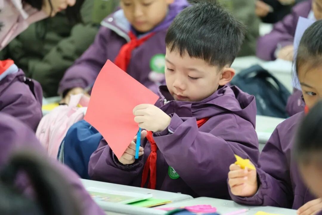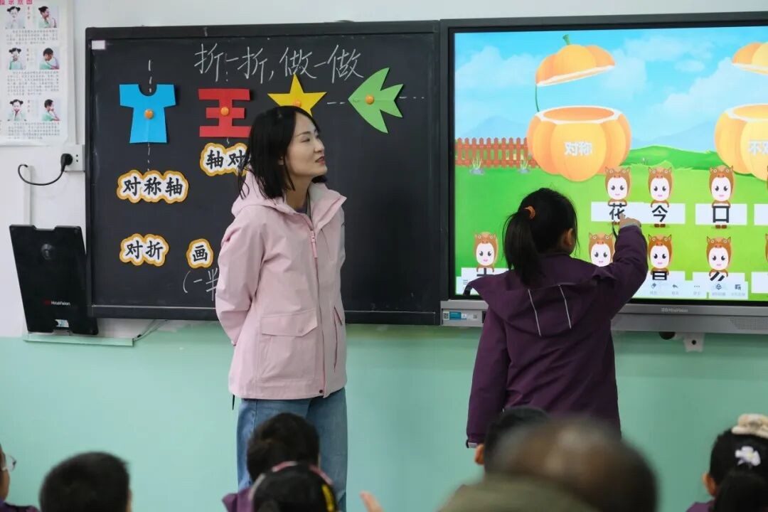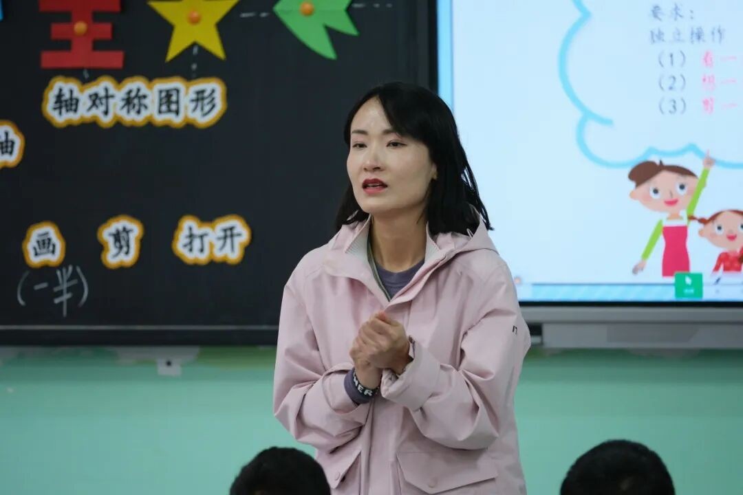 蒋妍璐老师以《折一折,做一做》为主题让学生自主探索,了解轴对称图形的基本特征,初步感知轴对称现象,欣赏数学中的对称美。在学习中孩子们主动链接生活,用数学的眼光创造美。