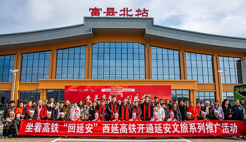 12月26日,西延高铁正式开通运营,首批百名来自西安及周边城市的游客,乘坐高铁奔赴延安,开启为期两天一晚的赏黄河奇观、悟延安精神之旅。