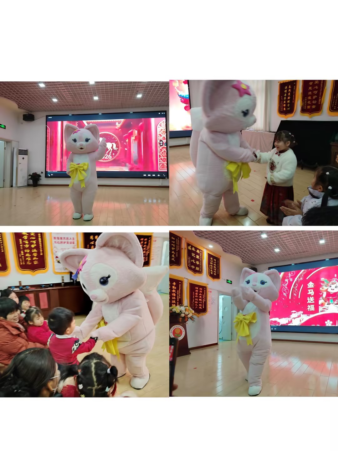 游园会现场设置了缤纷多样的美食摊与游戏摊,每个摊位前都人头攒动、热闹非凡。而最让孩子们惊喜的是,身着玩偶服的家长志愿者再次化身“祝福使者”,带着满满的心意穿梭于每个班级,将诚挚的祝福送到孩子们身边,一声声问候、一个个拥抱,让童真的笑脸更加灿烂。
