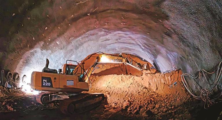 1月18日,在延榆高铁重难点控制工程——桐柏塬一号隧道,挖掘机在施工。 受访单位供图