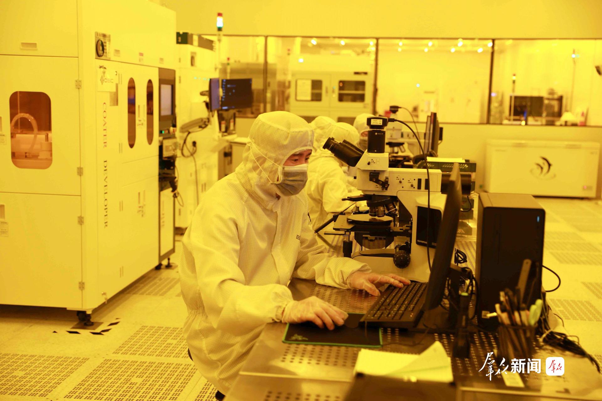 1月21日,在陕西光电子先导院的先进光子器件工程创新平台黄光区,工作人员正在进行检测。群众新闻记者 田若楠摄