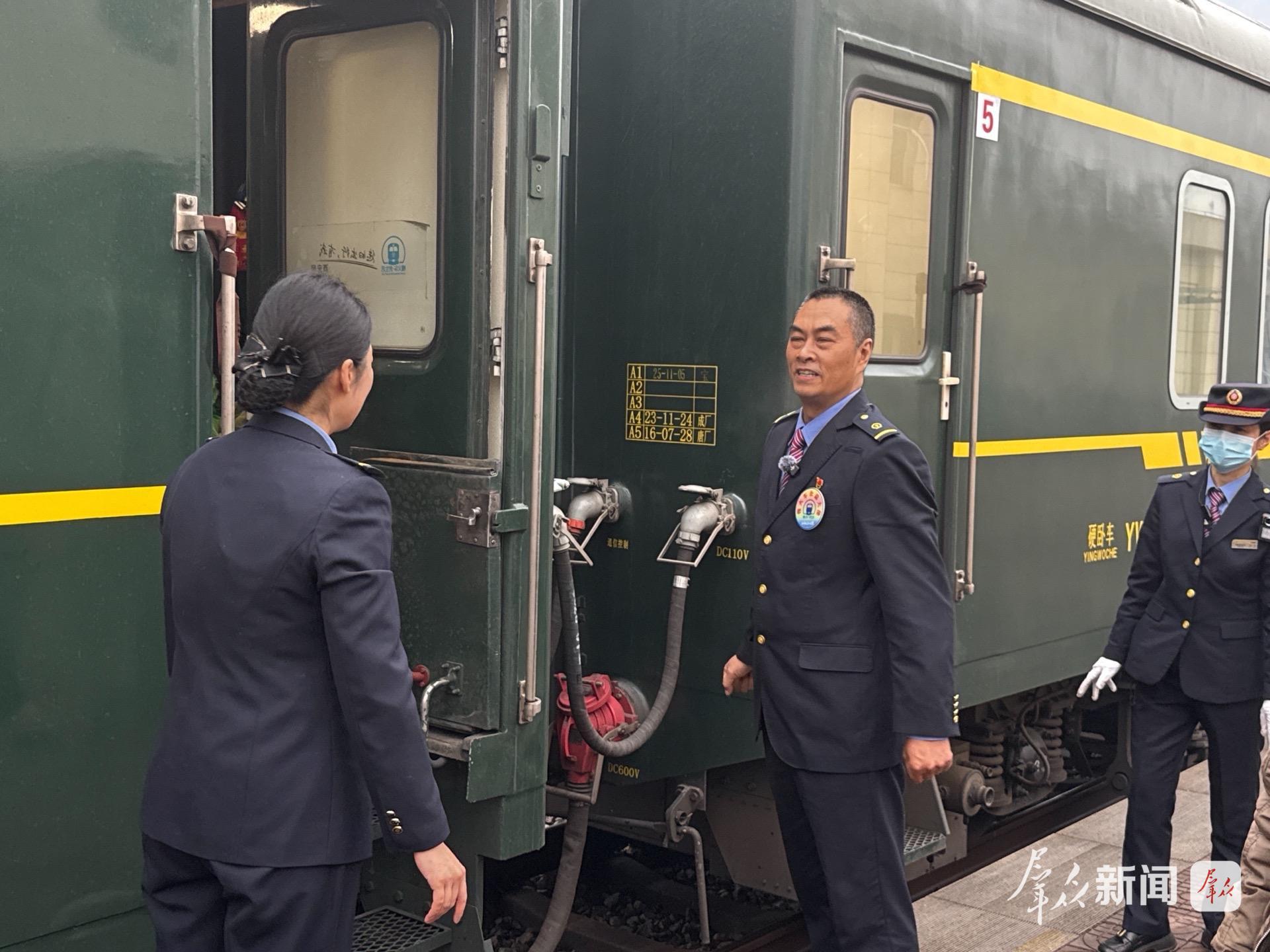 在向宝林身后,新任列车长谷雨欣正利落地引导其他旅客,不时朝她的“师傅”投去一瞥。这对新旧车长,在这趟已运行68年的慢火车上,完成了一次无声的同框与交接。