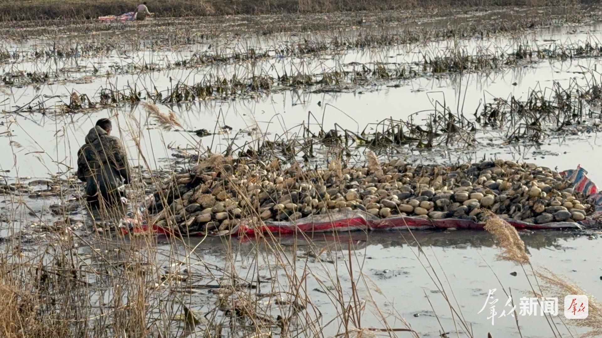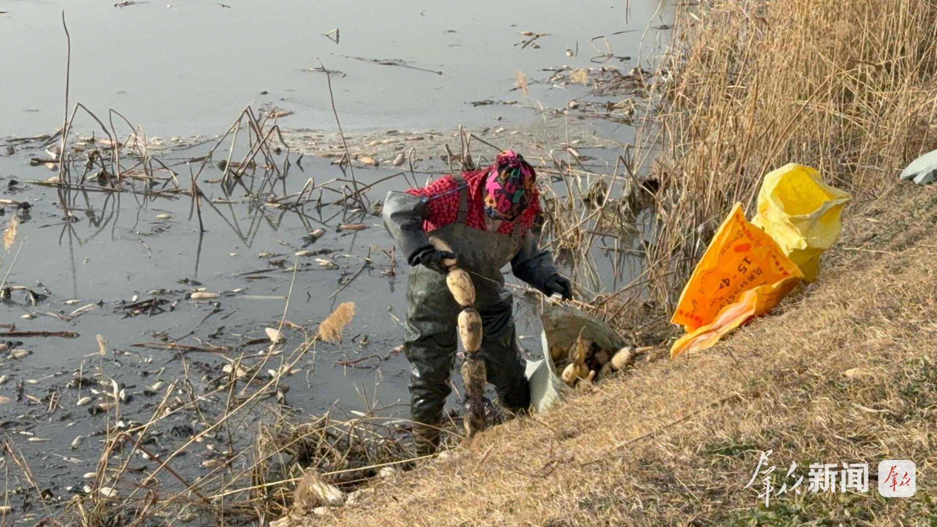 梅名贵在黄河滩上种了16年莲藕。近年来,莲藕的产量和品质有所下降。为了提高效益,去年叁河公司试着在荷塘里养蟹养虾。效果还不错,一亩地能增收2000元到3000元。