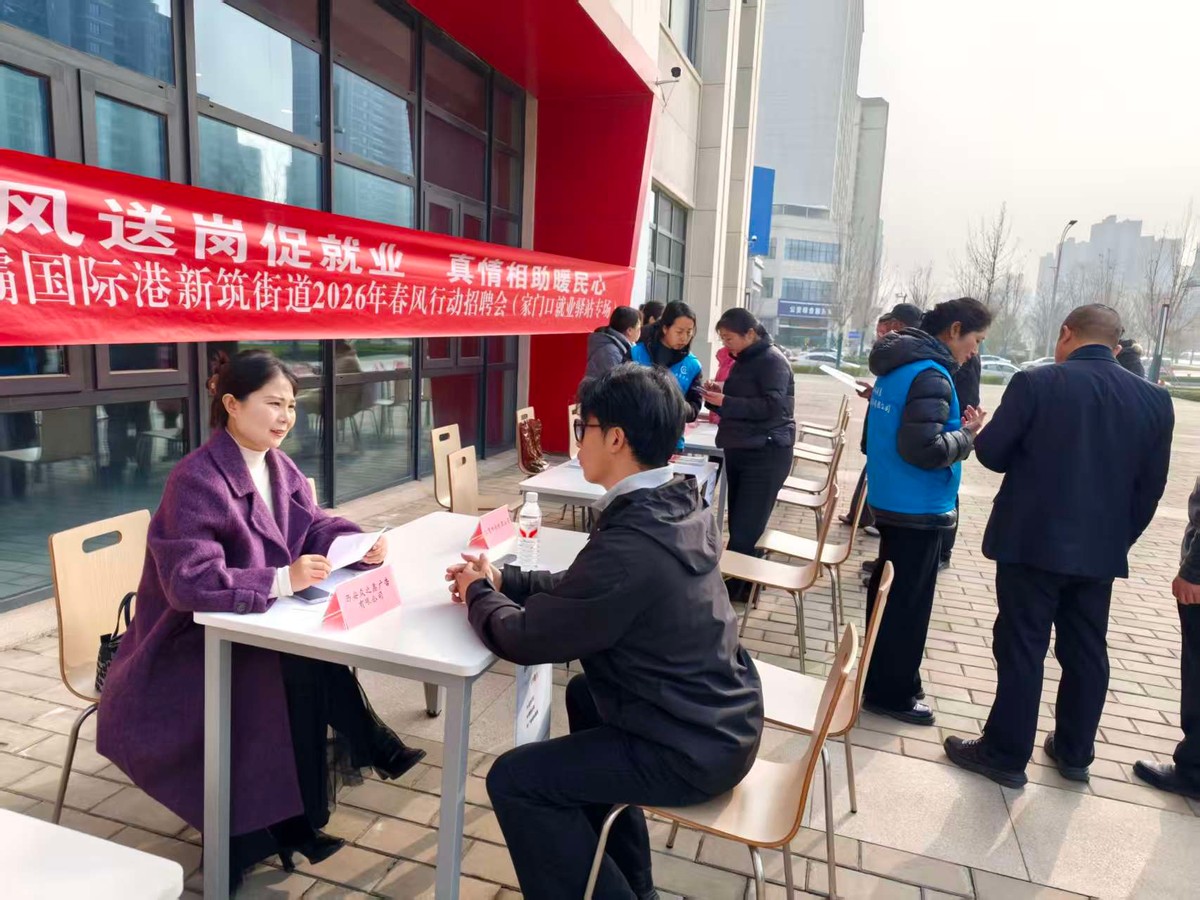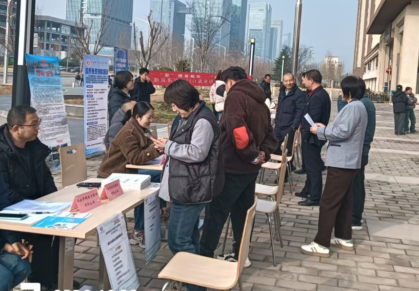 3月5日上午,新筑街道2026年“春风行动”第二场招聘会在街道便民广场举办,吸引辖区各类求职者前来咨询洽谈、投递简历。