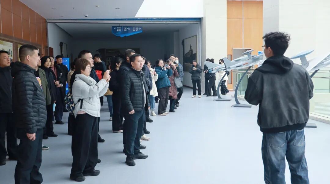 迎着初春的晨光,参观队伍走进西北工业大学军工素质教育实践中心。在讲解员的引导下,大家依次参观各个展厅,近距离观摩我国国防科技领域的前沿成果,真切感受和体悟“铸剑”精神。