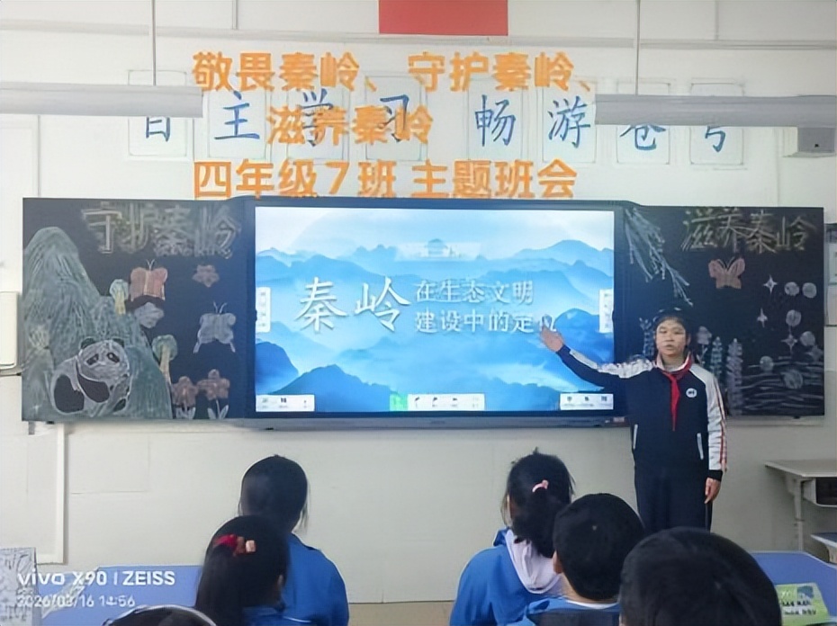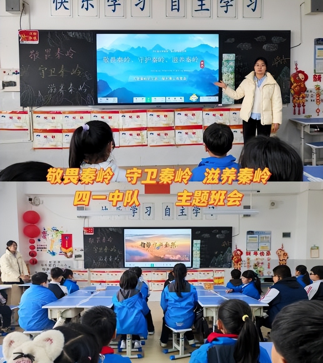 与此同时,东城一小五星分校的电子条屏滚动播放保护秦岭的宣传语,从“让秦岭美景永驻、青山常在、绿水长流”到“绿水青山就是金山银山”,这些标语时刻警醒着师生,让保护秦岭的意识融入日常。