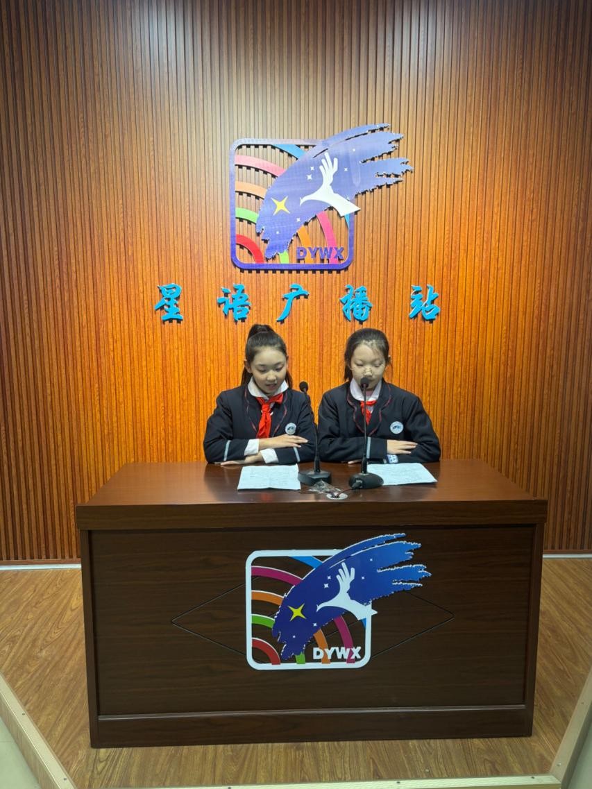 东城一小五星分校红领巾广播站以清脆童声发出少先队保护秦岭生态的倡议,一字一句饱含热忱,在校园上空回荡,播撒守护秦岭的种子。