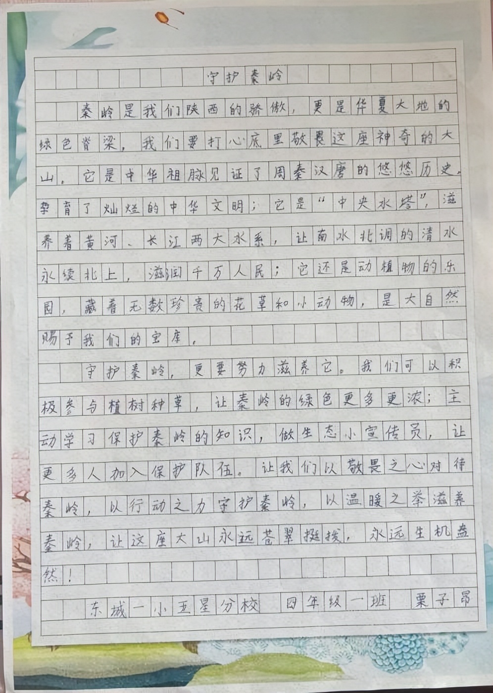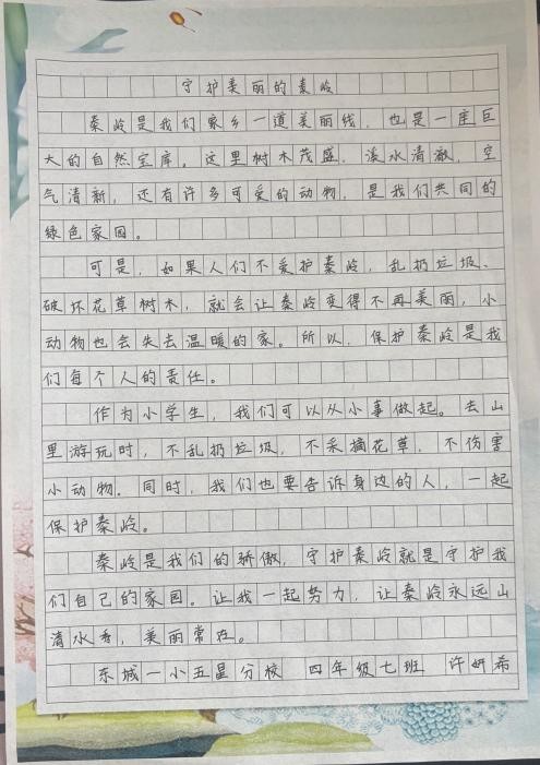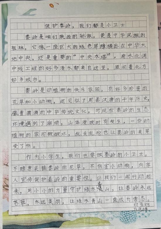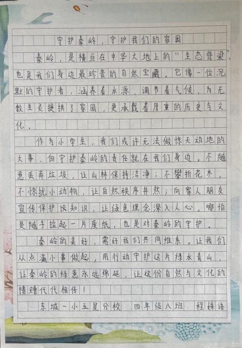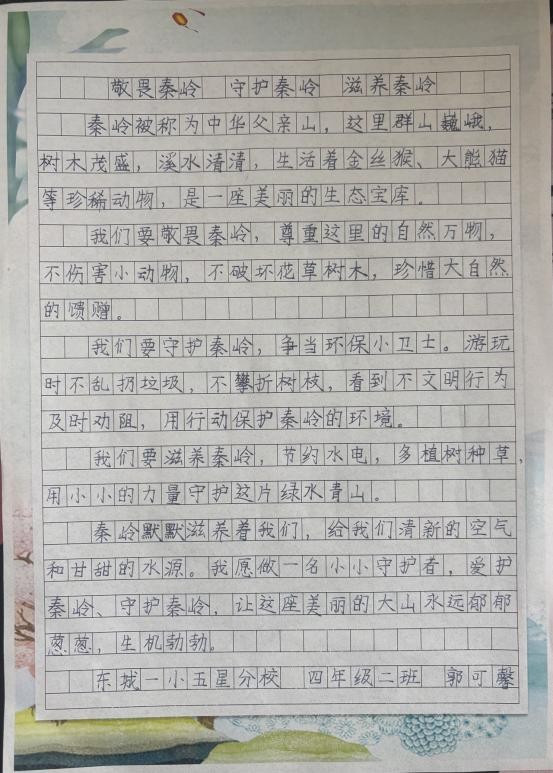 东城一小五星分校的同学们在作文中深入探讨秦岭保护的重要性,用文字表达对秦岭的热爱,对保护行动的坚定支持,书写自己守护秦岭的深刻感悟。